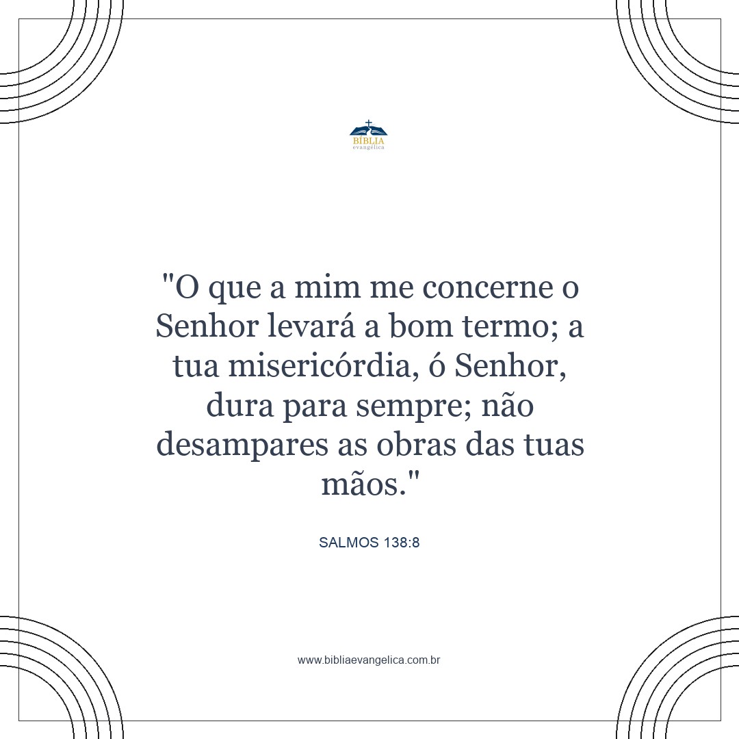 O Senhor cumprirá o seu propósito para comigo! Teu amor, Senhor, permanece para sempre; não abandones as obras das tuas mãos!