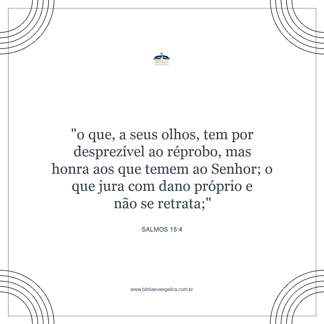 que rejeita quem merece desprezo, mas honra os que temem ao Senhor, que mantém a sua palavra, mesmo quando sai prejudicado,