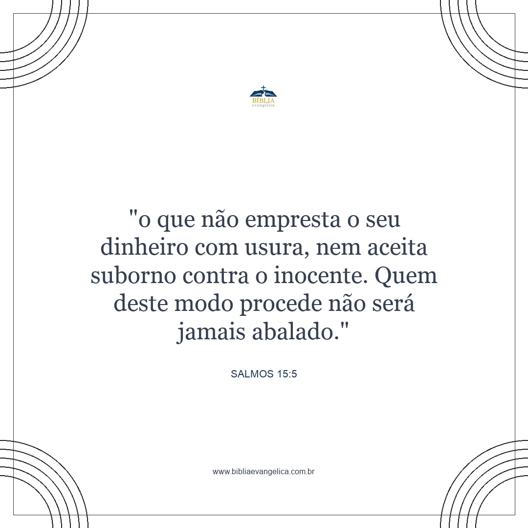 que não empresta o seu dinheiro visando lucro nem aceita suborno contra o inocente. Quem assim procede nunca será abalado!