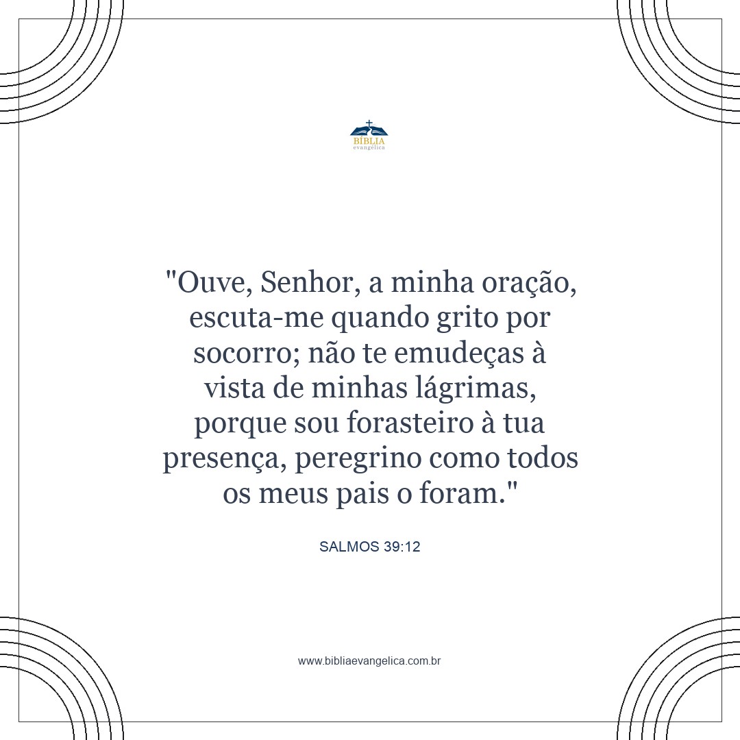 Ouve a minha oração, Senhor; escuta o meu grito de socorro; não sejas indiferente ao meu lamento. Pois sou para ti um estrangeiro, como foram todos os meus antepassados.