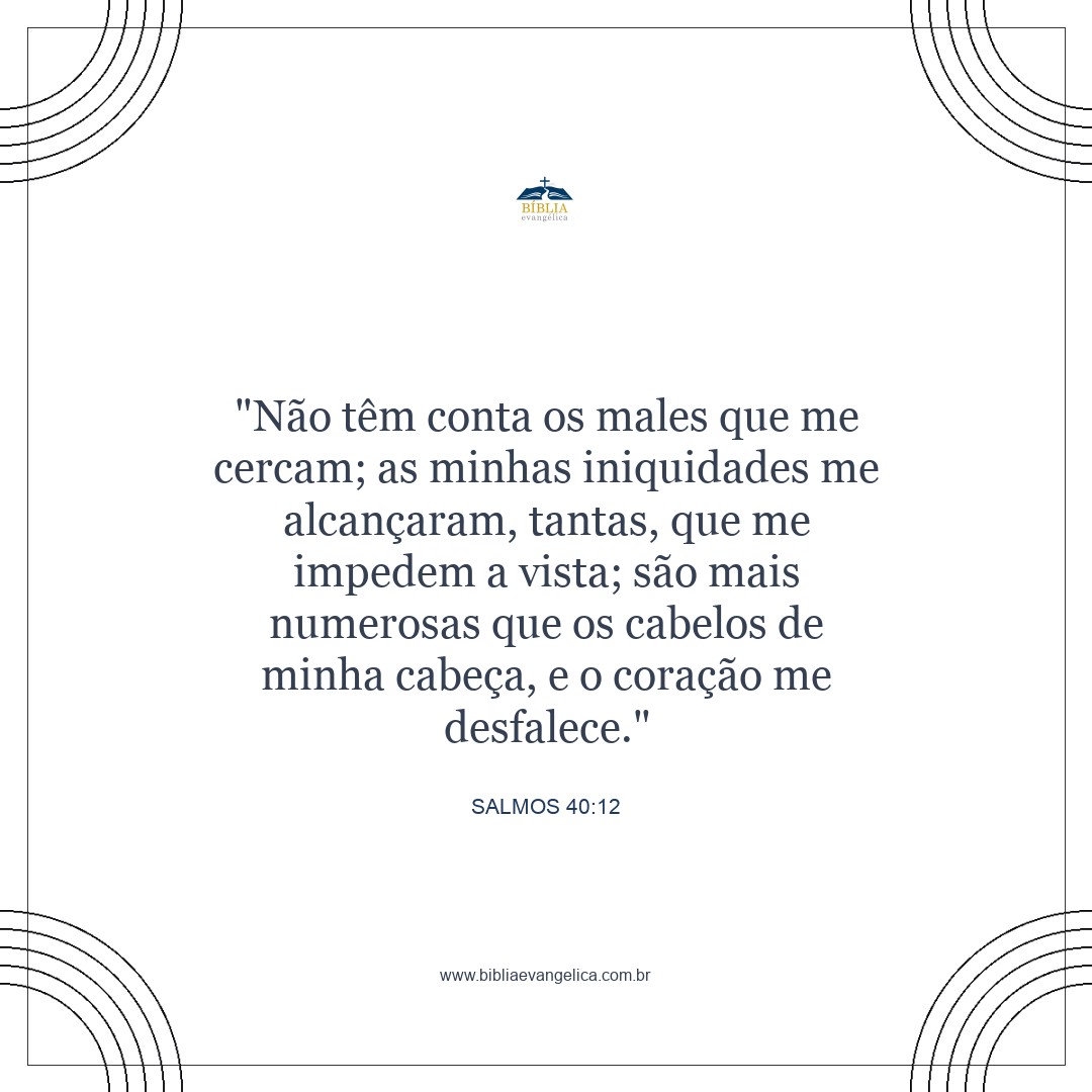 Pois incontáveis problemas me cercam e as minhas culpas me alcançaram, e já não consigo ver. Mais numerosos são que os cabelos da minha cabeça, e o meu coração perdeu o ânimo.