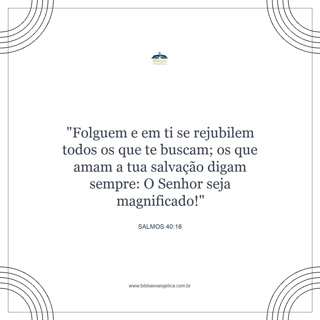 Mas regozijem-se e alegrem-se em ti todos os que te buscam; digam sempre aqueles que amam a tua salvação: "Grande é o Senhor! "