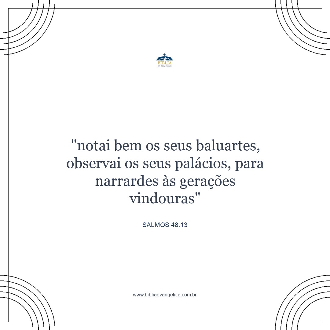 observem bem as suas muralhas, examinem as suas cidadelas, para que vocês falem à próxima geração