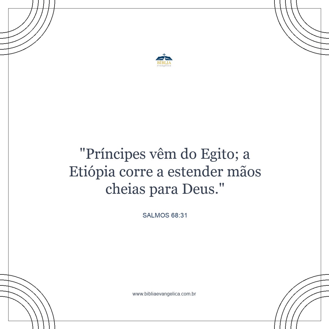 Ricos tecidos venham do Egito; a Etiópia corra para Deus de mãos cheias.