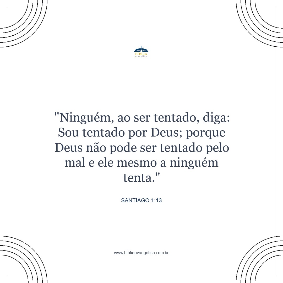 Quando alguém for tentado, jamais deverá dizer: "Estou sendo tentado por Deus". Pois Deus não pode ser tentado pelo mal, e a ninguém tenta.