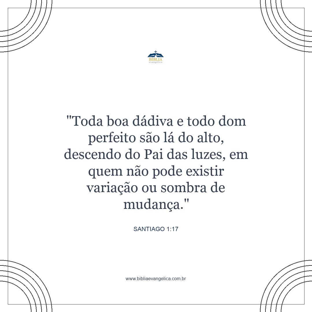 Toda boa dádiva e todo dom perfeito vêm do alto, descendo do Pai das luzes, que não muda como sombras inconstantes.