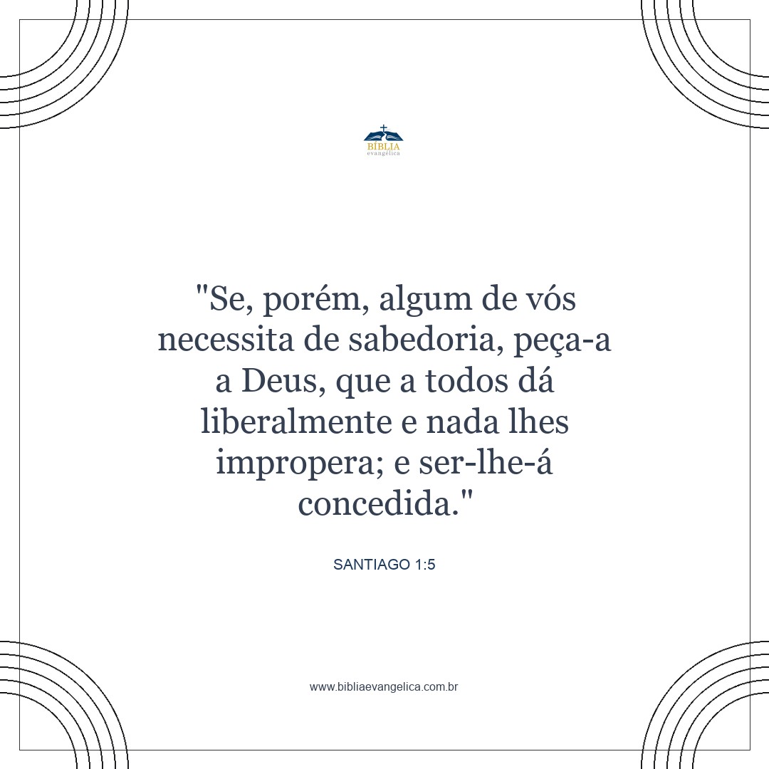 Se algum de vocês tem falta de sabedoria, peça-a a Deus, que a todos dá livremente, de boa vontade; e lhe será concedida.